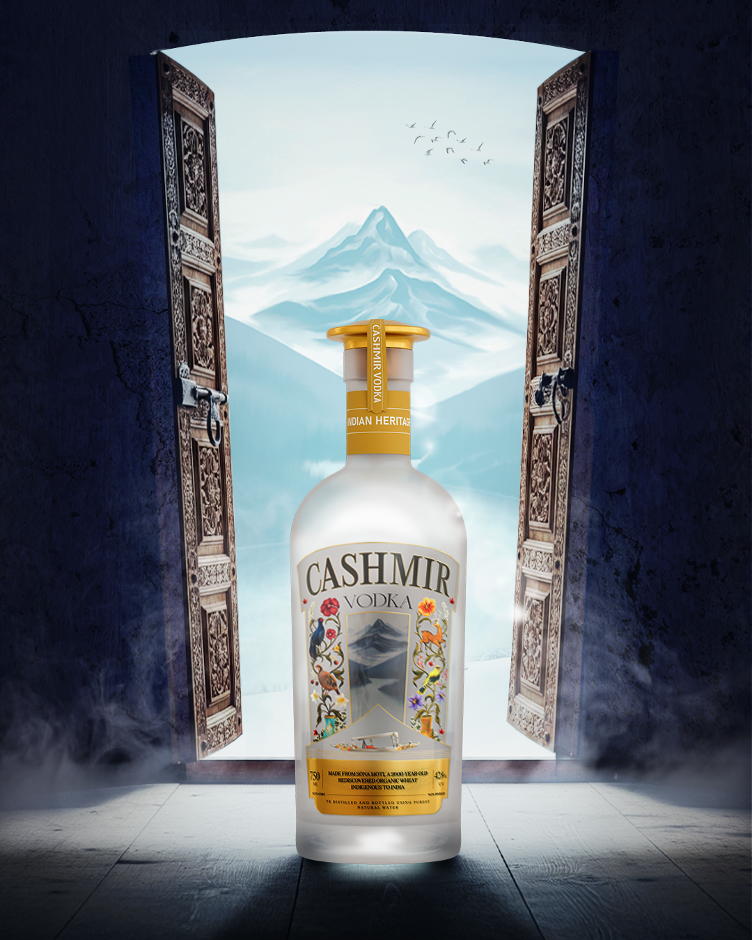Crafted with precision, Cashmir Vodka undergoes an intricate journey of seven-time distillation process, where the liquid is slowly refined and transformed. The impurities fall away, leaving behind a spirit that flows like silk and lingers with quiet clarity. Born from rare organic Sona Moti wheat and the untouched waters of the Himalayas, this vodka carries depth, softness and purity in every sip.